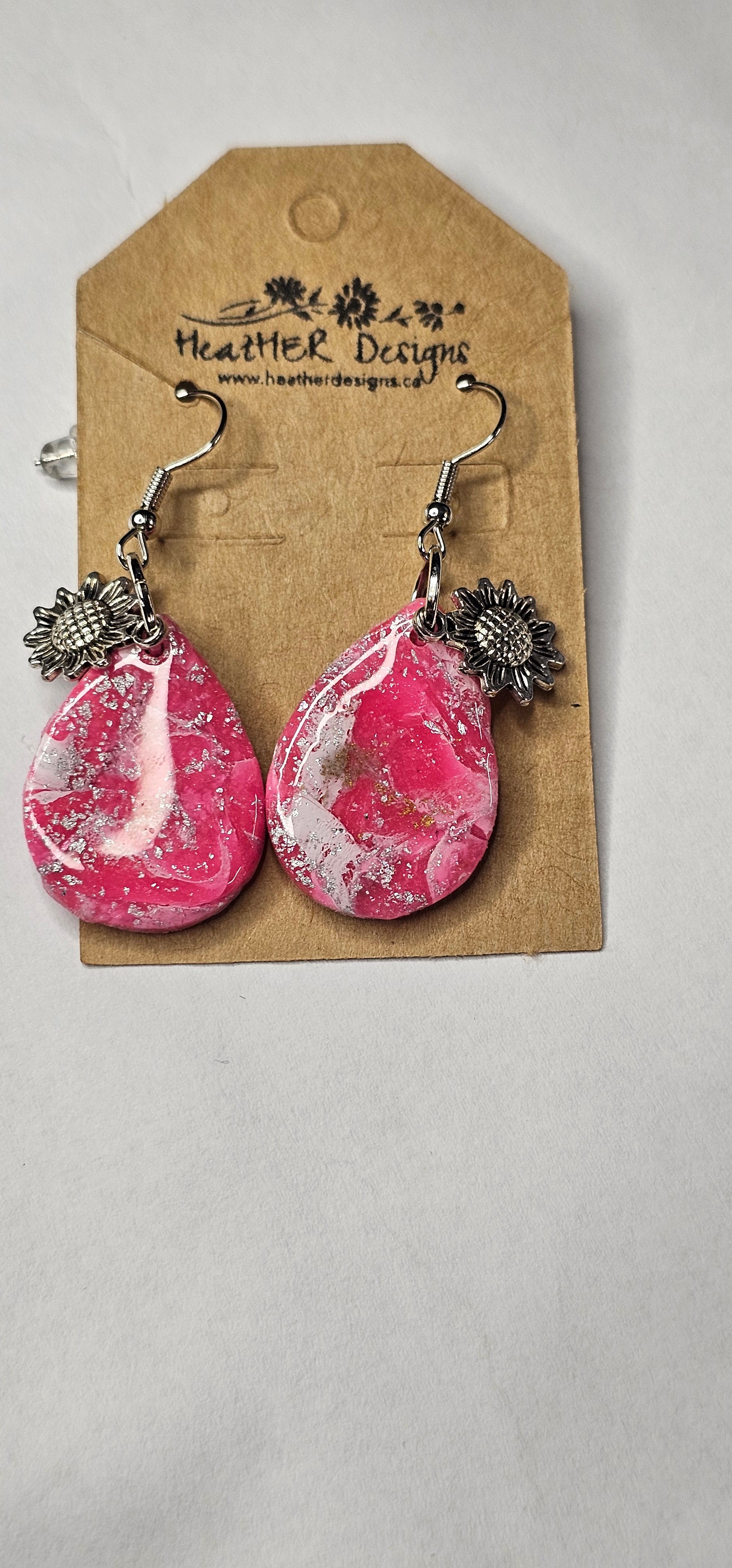 Unleash your daring side with our Abstract Teardrop Pink glitter 'Marble' with Flower Bauble earrings. The hypoallergenic hooks make them perfect for any adventure, while the unique pink 'marble' design and delicate flower add a touch of boldness to your style. Dare to stand out and make a statement with these stunning earrings!
