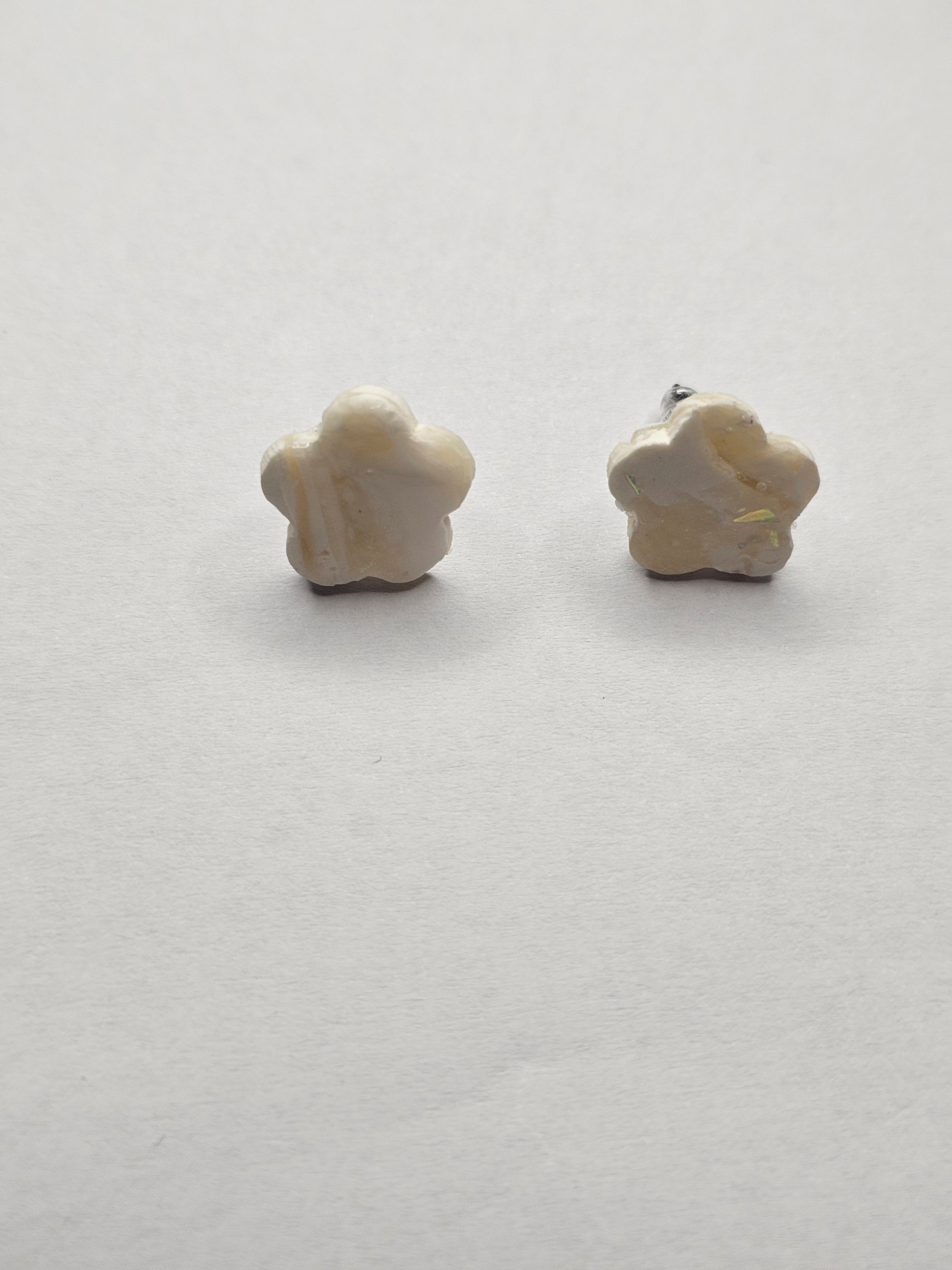 Add a sweet touch to your outfit with our Button Flower Earring on a Post in translucent Pink and White, Cream, Blue/White glitter and a retro rainbow. Made with a stainless steel post, these earrings are both cute and durable. Perfect for any occasion, they'll make you stand out in a subtle and charming way.